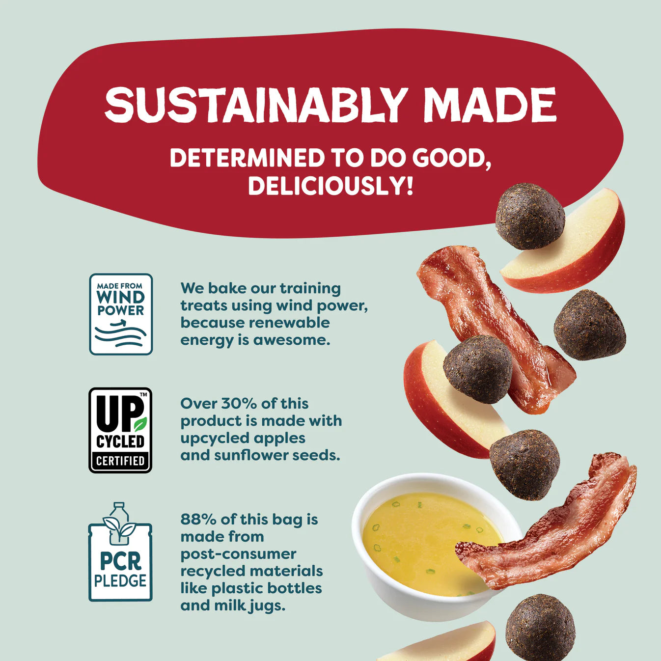 When you’re rewarding your pup big, bacon just hits different. Our bone broth chews contain naturally occurring collagen for a health boost, plus all the flavor to keep those tails wagging. Maybe you can teach an old dog new tricks with these craveable bacon & apple chews.
