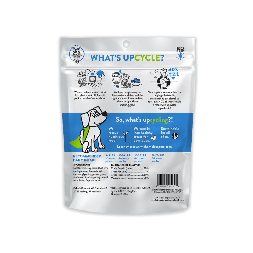 Oh, let us count the reasons! First, they are innovative eco-friendly treats, using upcycled ingredients. Which we Love! They use perfectly healthy ingredients that would have otherwise gone to waste due to cosmetic imperfections, leftovers, etc. Shameless rescues them and helps reduce the amount of waste headed to landfills. Every 12 bags sold saves 1lb of food from going to waste! Shameless treats have also consistently been fan favorites and perform very well in our palatability tests. They are soft-baked, which makes them versatile for dogs of almost any size and dental health. And they're a bargain compared to other premium treats! Finally, they are made in Chicago (our neighbors!) by a team of really great people. We're big fans!