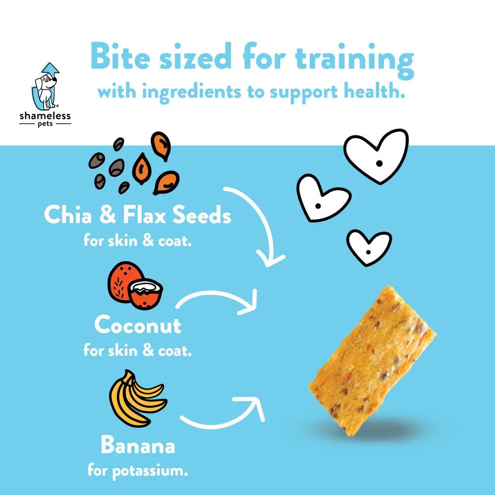 Shameless Pets’ selection of healthy sustainable jerky bites contains at least 30% upcycled ingredients. They have functional benefits including supporting healthy digestion, skin & coat, and hips & joints. They are good for both small and large dogs as well as puppies, as they are easy to break into small pieces. And they're a bargain compared to other premium treats! Finally, they are made in Chicago (our neighbors!) by a team of really great people. We're big fans!