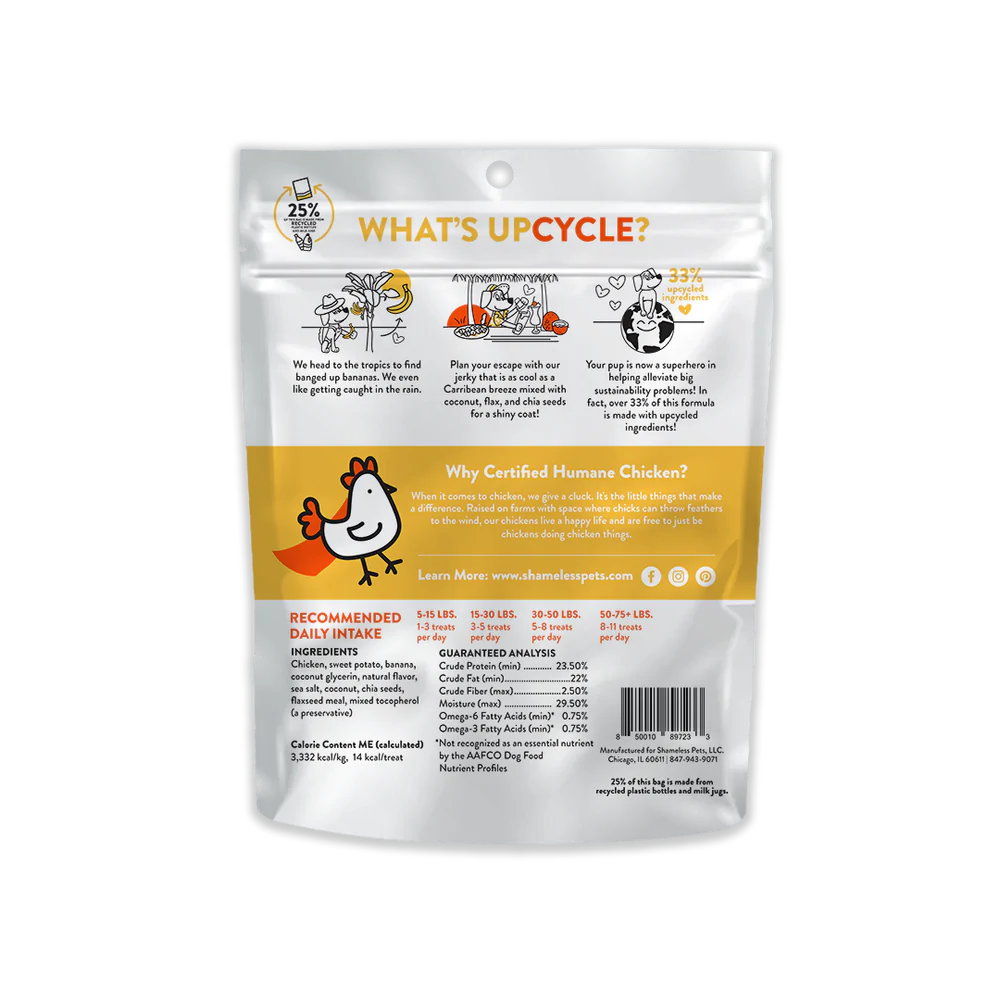 Plan your escape to the tropics for a clucking good time! While these bites support your pup’s skin & coat, it won’t prevent that first-day-at-the-beach sunburn. We use humanely raised chicken which means they get feed that doesn’t plump up the volume with growth hormones and space where they can throw feathers to the wind.