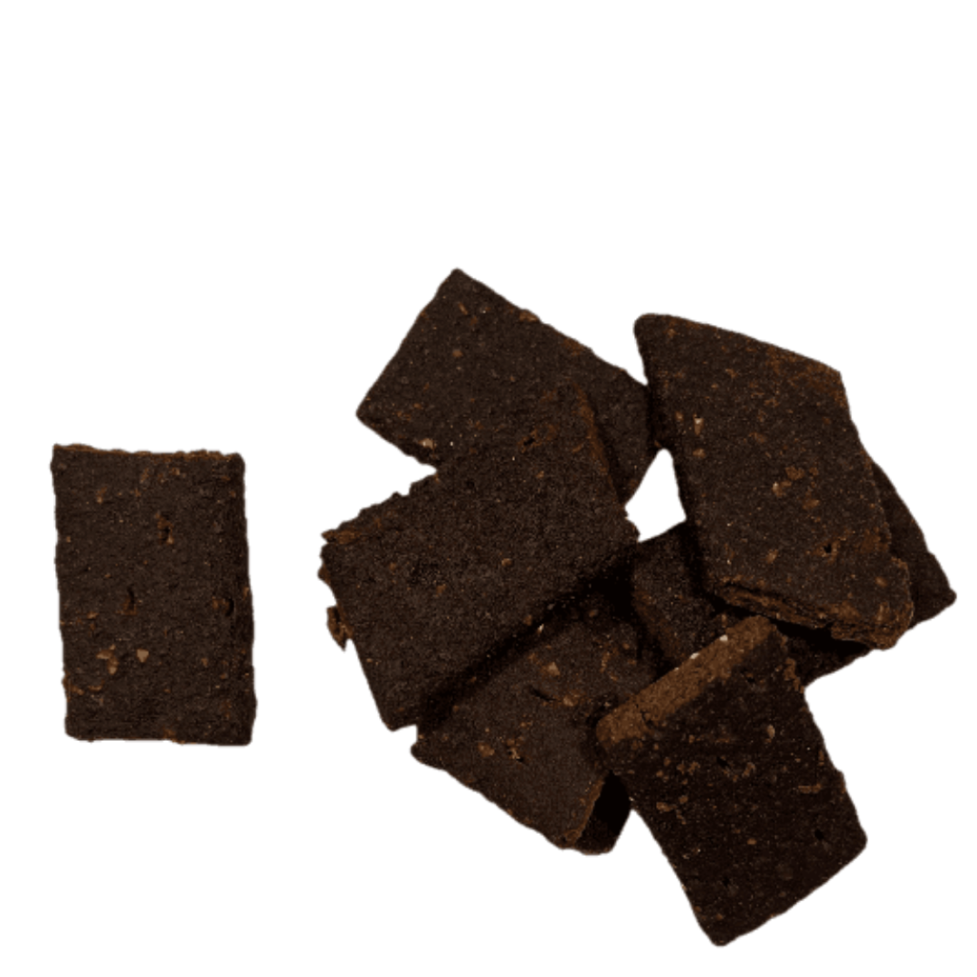 Cricket, Molasses, Sweet Potato, Glycerin, Pea Protein, Pumpkin, Apple, Rolled Oats, Tapioca Flour, Natural Flavor, Natural Smoke Flavor, Rosemary Extract, Mixed Tocopherols (preservative), Bacilus Subtilis.