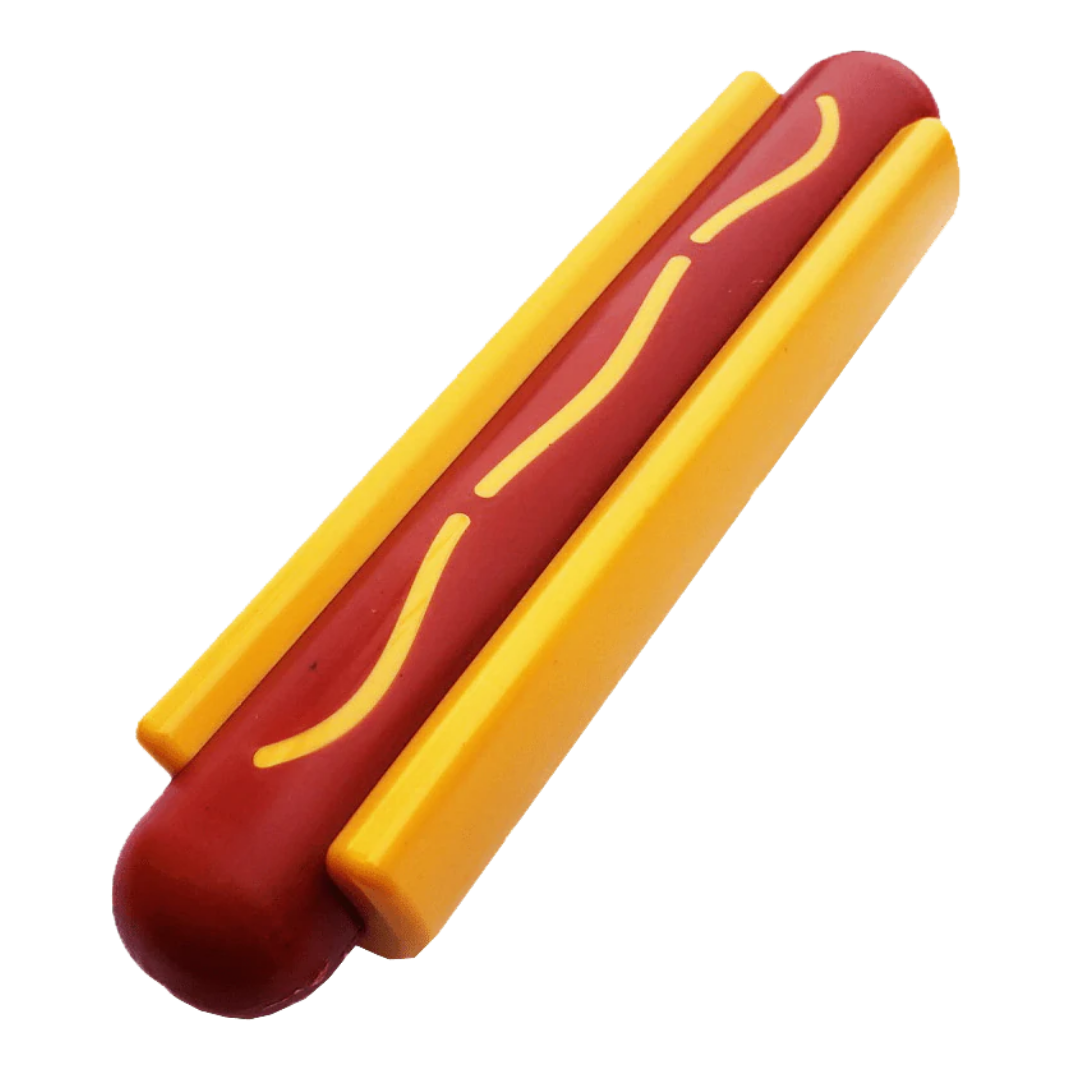 We appreciate good hot dogs, as long as they don't have ketchup on them. No ketchup. Ever! :) This one is great. It is designed and built to withstand even the most aggressive power chewers. It helps keep your dog entertained and solves problem chewing behaviors. Plus it helps keep your dog's teeth (and breath fresher)! Made from ultra-durable, FDA compliant, and non-toxic nylon, it is veterinarian-approved and a fan favorite.