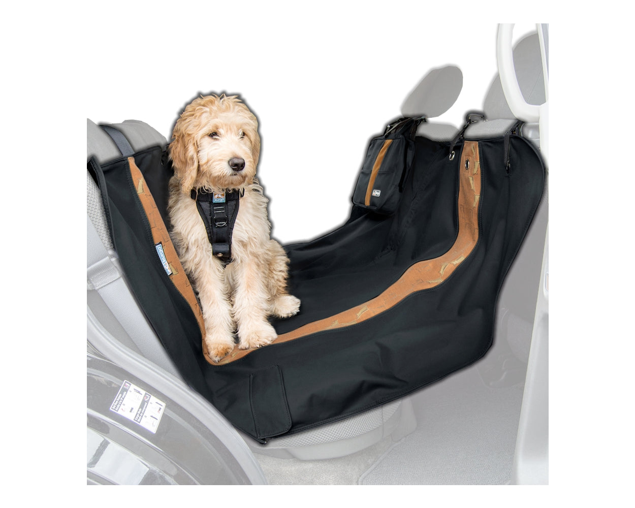 Suspended securely between the front and back seats, the Wander Hammock is a durable, waterproof barrier between your dog and any hope of automotive resale value. There are eight attachment points, for a secure fit, and a center zipper allows you to fold down half, for those times you have a human passenger back there. Openings allow for both seat belts and car seats. Meanwhile, it blocks your dog’s access to the front seat, keeping everyone safer.